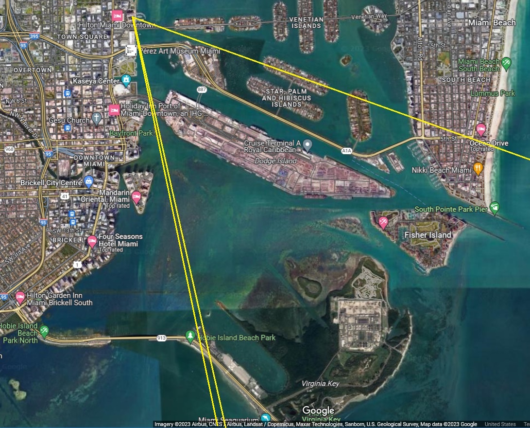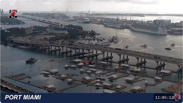 Port O' Miami, Dodge Island | Map of AreaMarine traffic Miami area![]() View Live Stream at YouTube, embedding not allowed Camera location (click for map) is not revealed, but when triangulating on the various wide angle shots, all signs point to an upper floor of the Marquis Condo tower next to MacArthur Causeway. (In case above live stream doesn't work for Miami, click below) ![]() View Live Stream at YouTube, embedding not allowed Camera location (click for map) is not revealed, but when triangulating on the various wide angle shots, all signs point to an upper floor of the Miami Marriott near NE 15th Street. LIVE Port Miami Webcam with VHF Marine Radio Feed from PTZtv Video, click "Watch on YouTube," embedding not allowed. An ad might play on start or periodically. Camera pans, zooms. Views include Dodge Island, Palm Island, Star Island, Fisher Island, South Beach. ![]() View Live Stream at YouTube, embedding not allowed PTZtv website to many Live Stream Florida sitesKey WestKey West Shipwreck Museum Camera location | Camera(In case above live stream doesn't work for Key West, click below) ![]() View Live Stream at YouTube, embedding not allowed Camera pans, zooms. Views include Mallory Square and Cruise Ship Docks Sloppy Joe's. Key West, click for 2 live stream camerasCamera location | View of camera on building | View of camera across the streetNew River Bridge, Fort Lauderdale, for railroad line | Map locationBrightline (Orlanda to Miami route) go by every couple of hours, plus Freight Back to Favorites or BACK button |